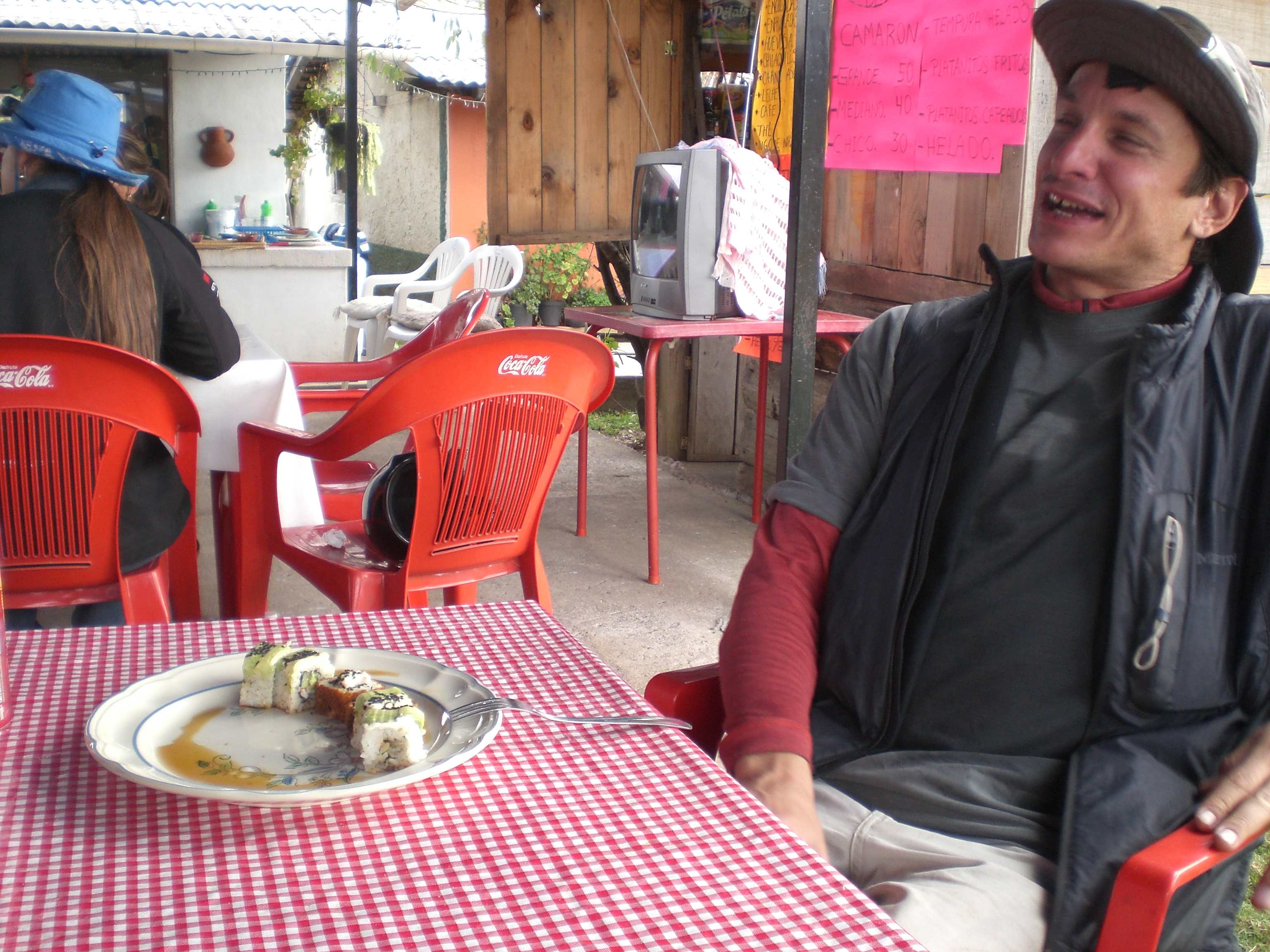 Chandler describing his flight. His head is still up in the clouds. Edith's brother makes some awesome sushi.